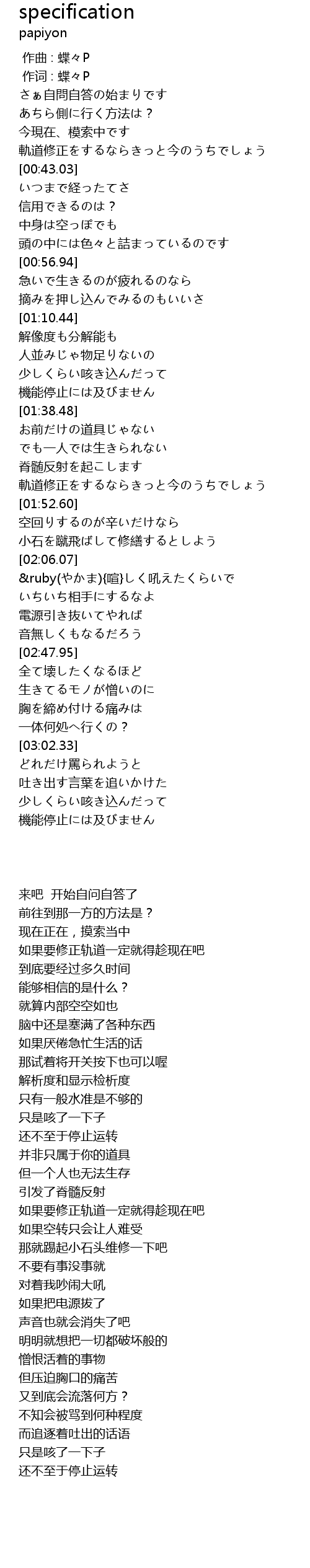 | [00:00.00] | 作曲 : 蝶々P |