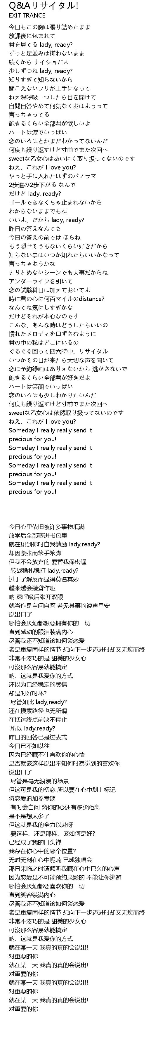 | [02:21.33] | いいよ、だから lady, ready? |
