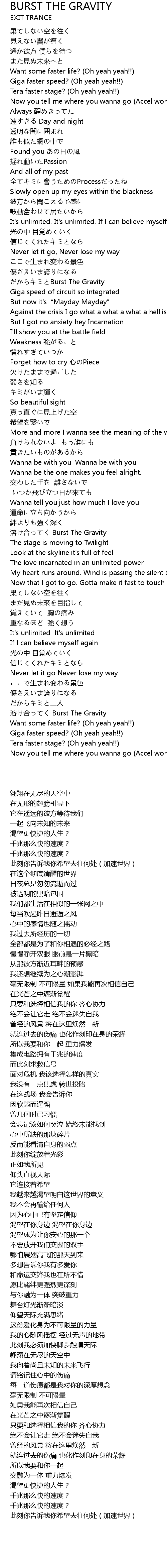 | [04:22.100] | 溶け合ってく Burst The Gravity |