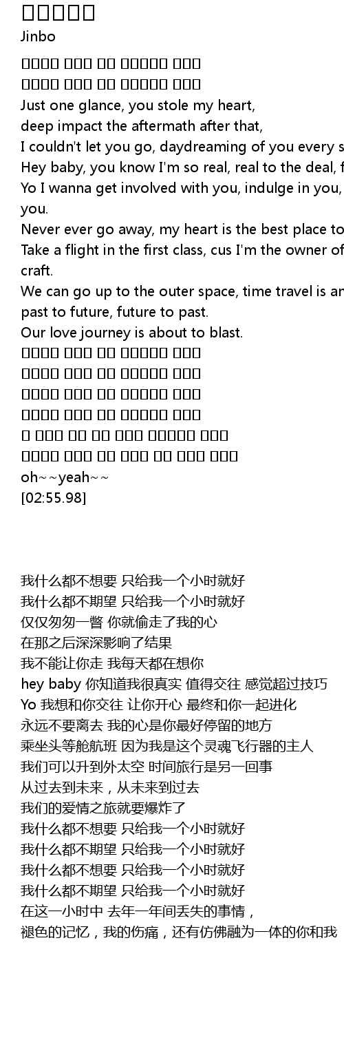| [01:53.70] | 아무것도 안바래 내게 딱한시간만 내줄래 |
