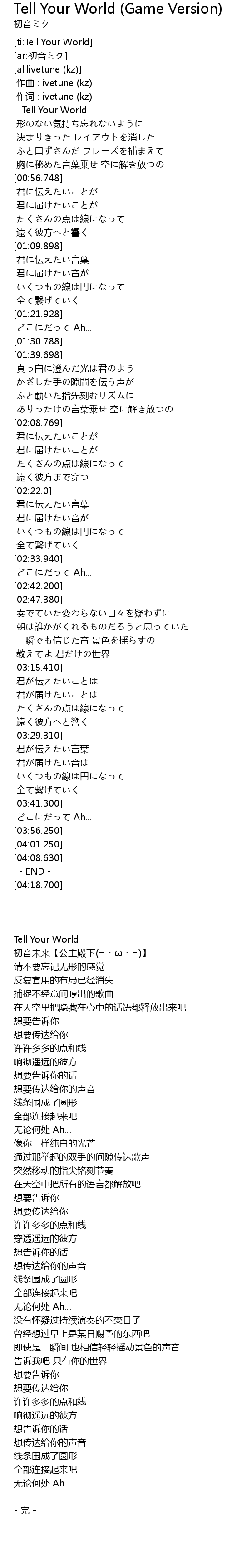 | [03:07.290] | 教えてよ 君だけの世界 |
