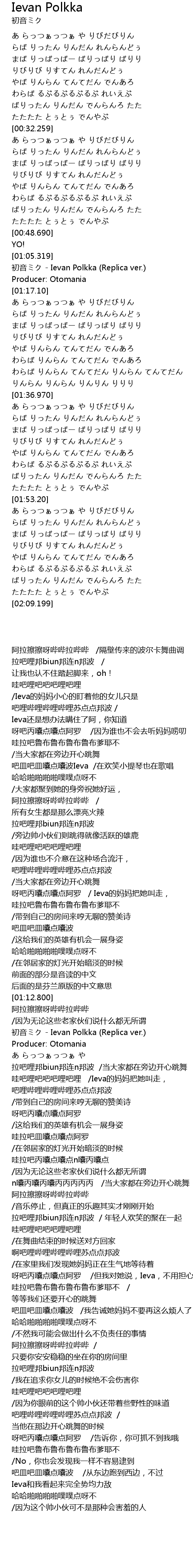 | [01:08.960] | chū yīn Ievan Polkka Replica ver. |