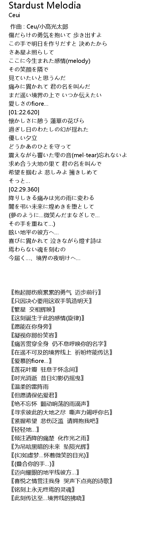 | [03:32.640] | 喜びに貫かれて 泣きながら燈す詩は |