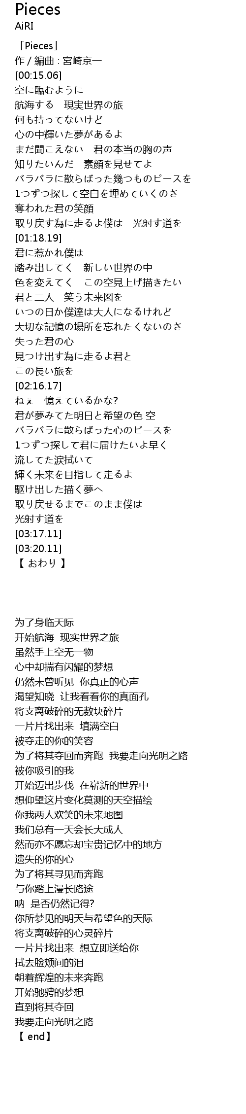 | [00:51.37] | バラバラに散らばった幾つものピースを |