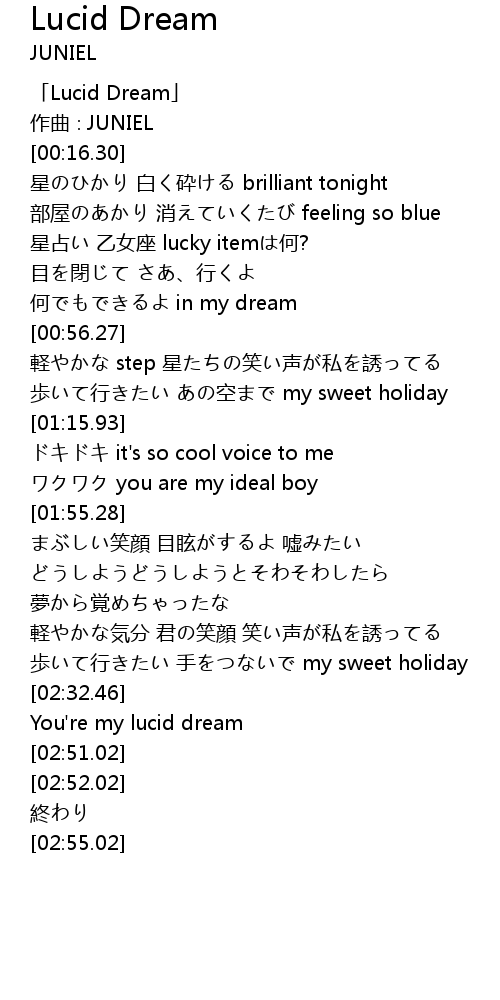 | [00:20.30] | 星のひかり 白く砕ける brilliant tonight |