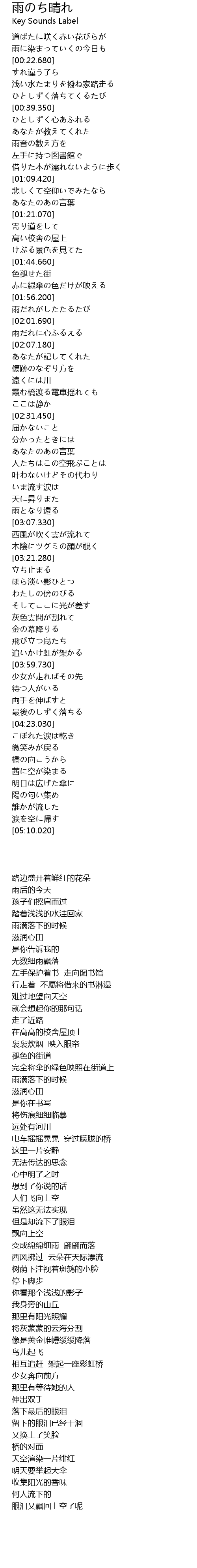 | [05:03.060] | 涙を空に帰す |