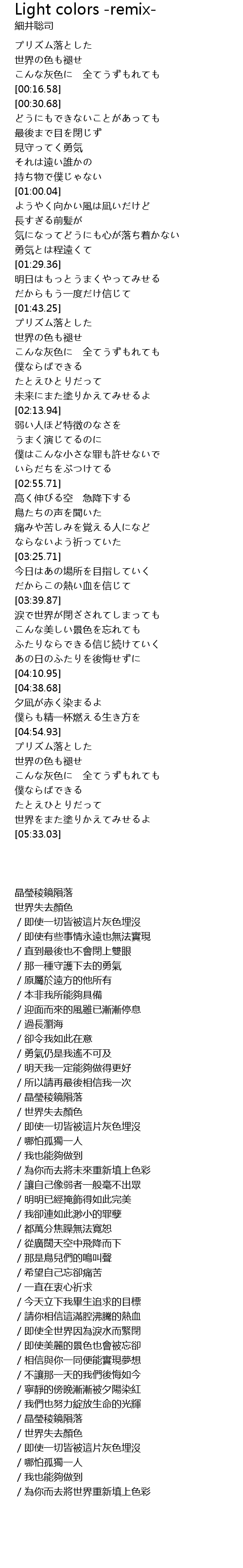 | [05:17.50] | 世界をまた塗りかえてみせるよ |