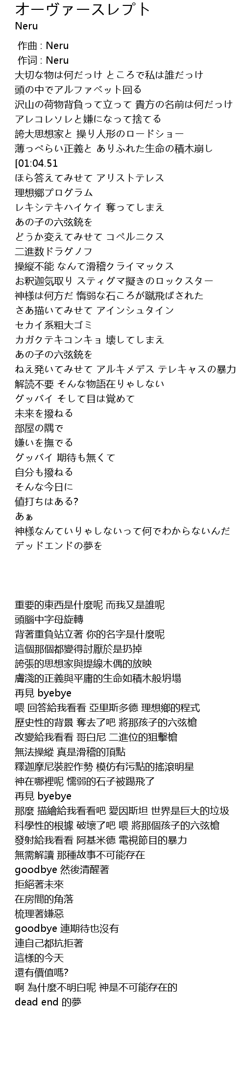 | [00:01.00] | 作词 : Neru |