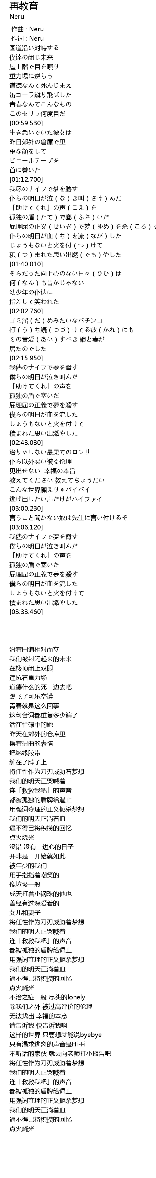 | [02:43.320] | 治りゃしない最果てのロンリ一 |