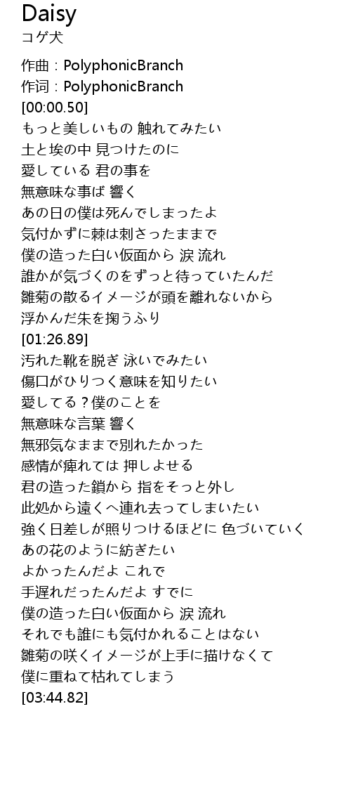 | [01:10.24] | 雛菊の散るイメージが頭を離れないから |