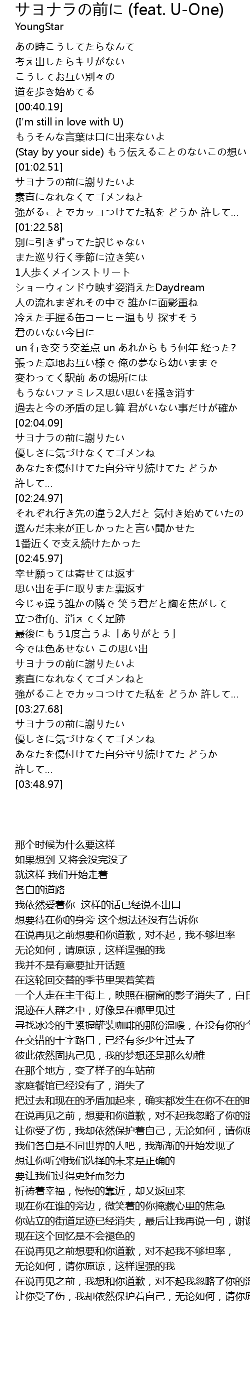 | Song | サヨナラの前に (feat. U-One) |