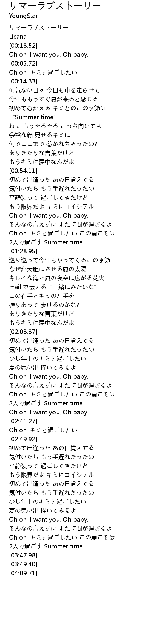 | [03:38.58] | Oh oh. キミと過ごしたい この夏こそは |