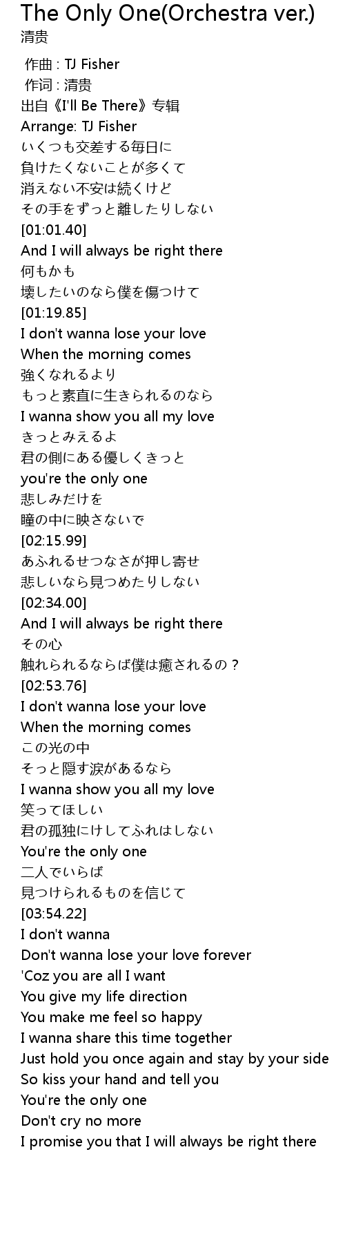 | [00:14.27] | chu zi I' ll Be There zhuan ji |