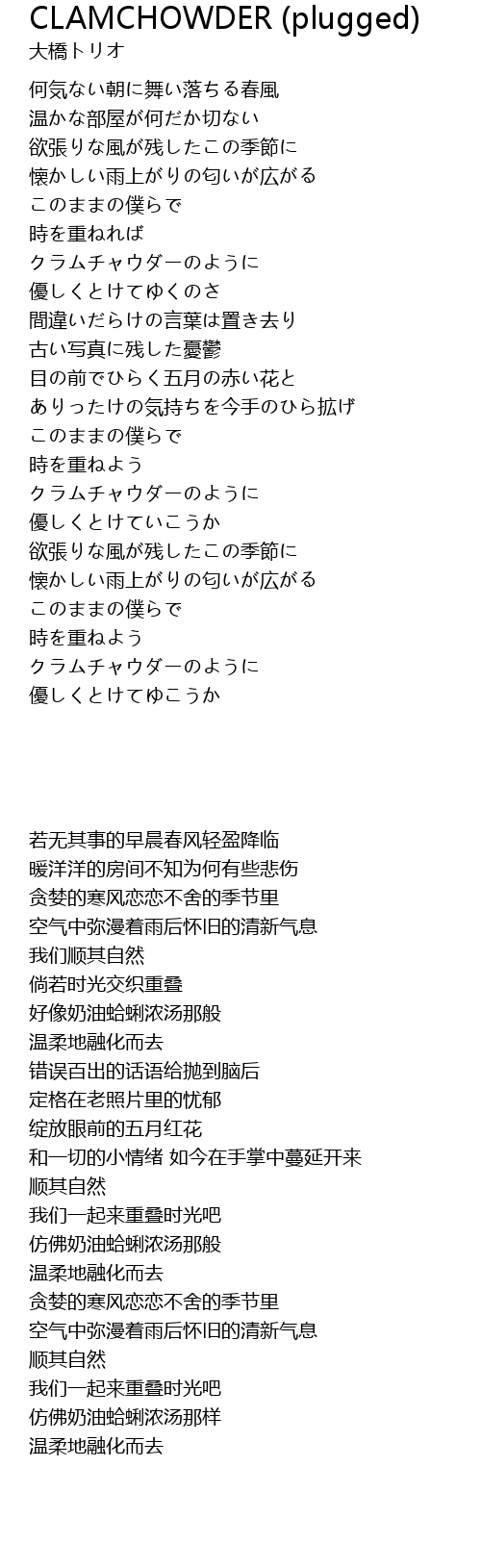 | クラムチャウダーのように | |