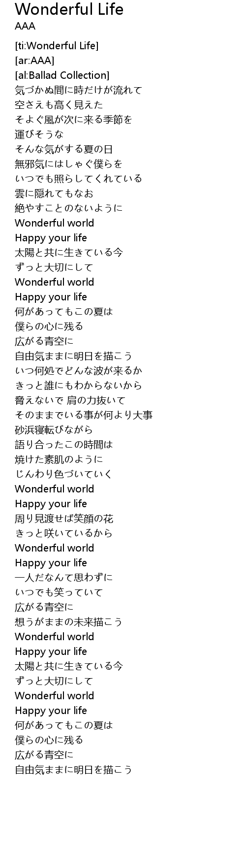 | [01:09.72] | Wonderful world |