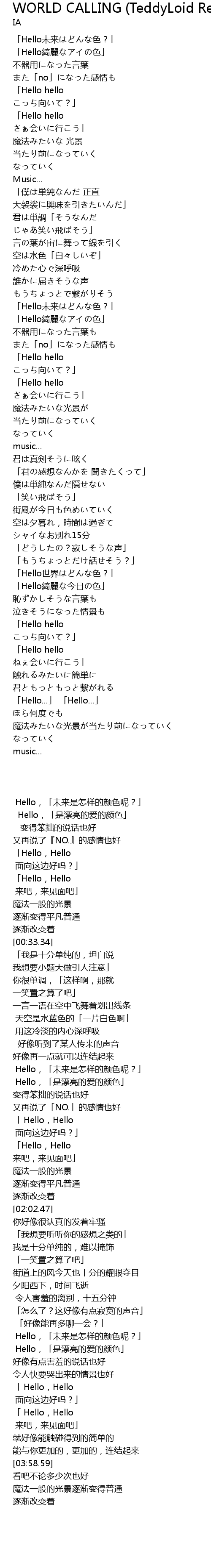 | [03:58.59] | 「Hello...」 「Hello...」 |
