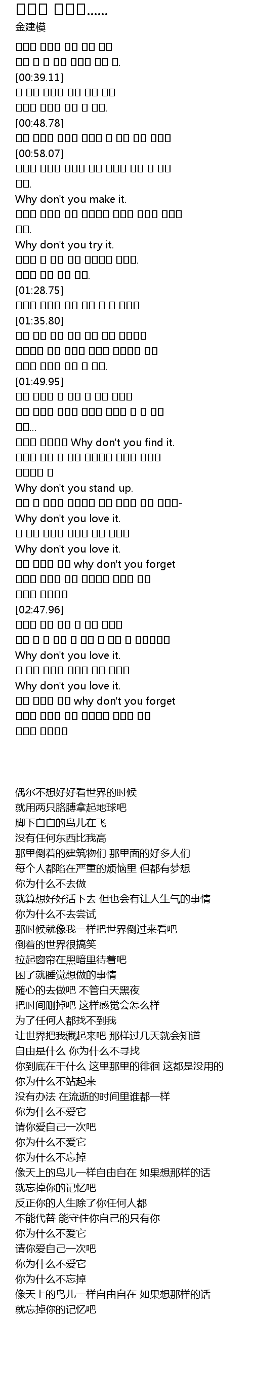 | [02:33.90] | 어떤 사랑을 원해 why don't you forget |