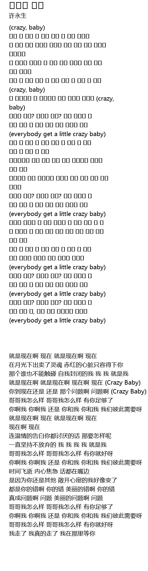 넌 아직이야 넌 아직이야 그게 문제야 문제야 (crazy, baby) |