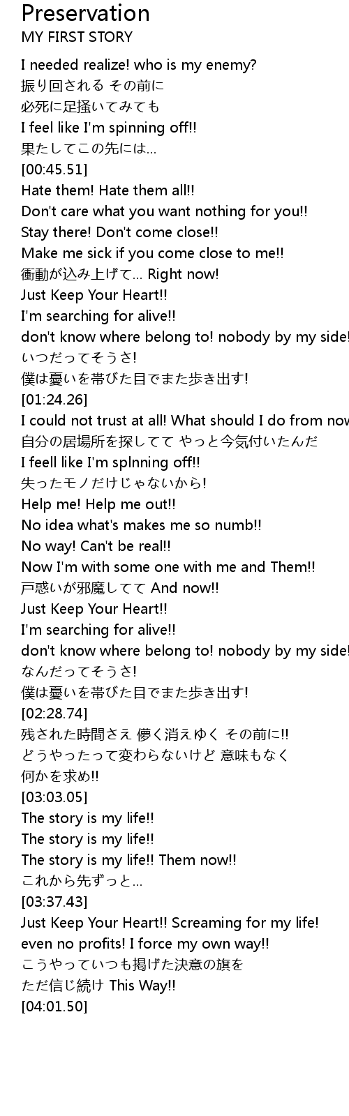 | [03:39.19] | Just Keep Your Heart!! Screaming for my life! |