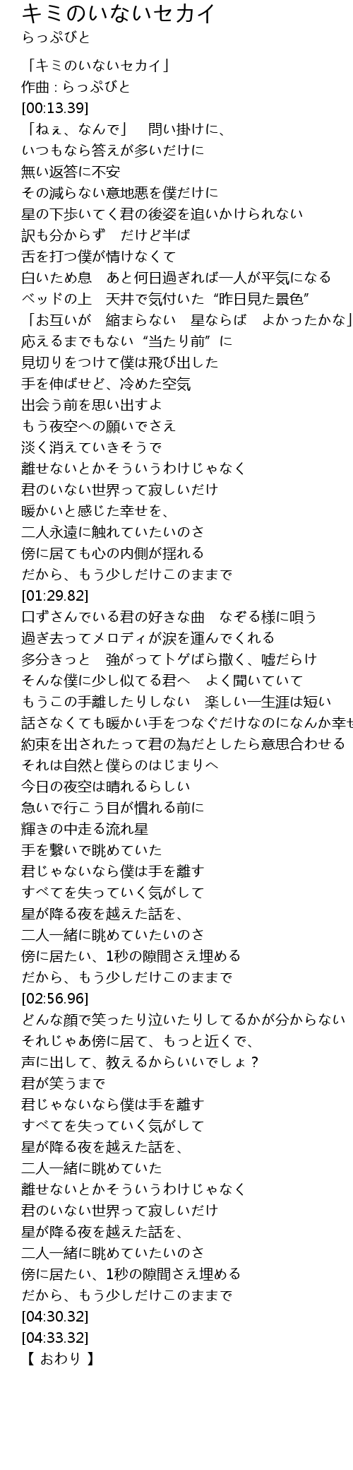 | [00:01.39] | 「キミのいないセカイ」 |