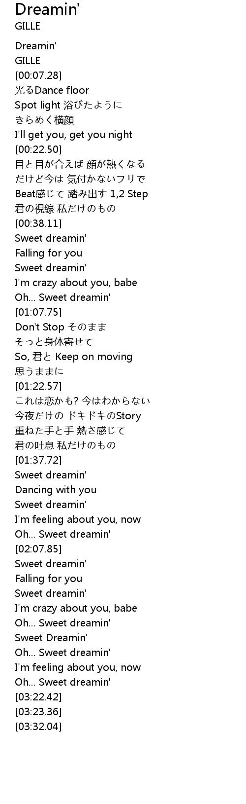 | [01:26.45] | 今夜だけの ドキドキのStory |