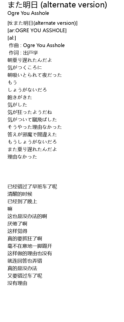 | [00:00.00] | 作曲 : Ogre You Asshole |