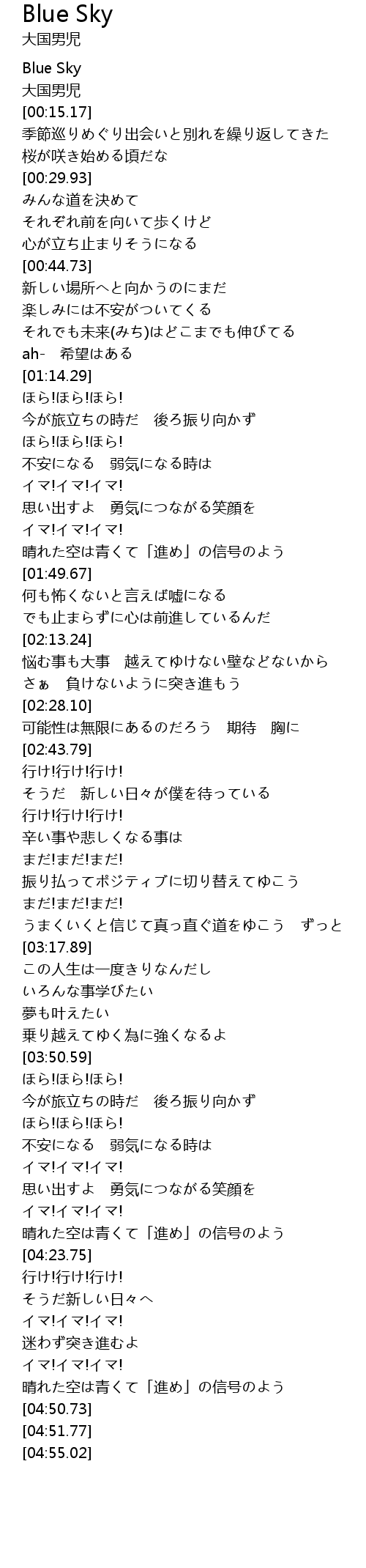 | [04:14.57] | 晴れた空は青くて「進め」の信号のよう |