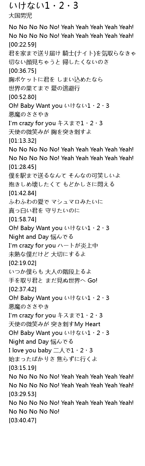 | [02:55.05] | Oh! Baby Want you いけない1・2・3 |
