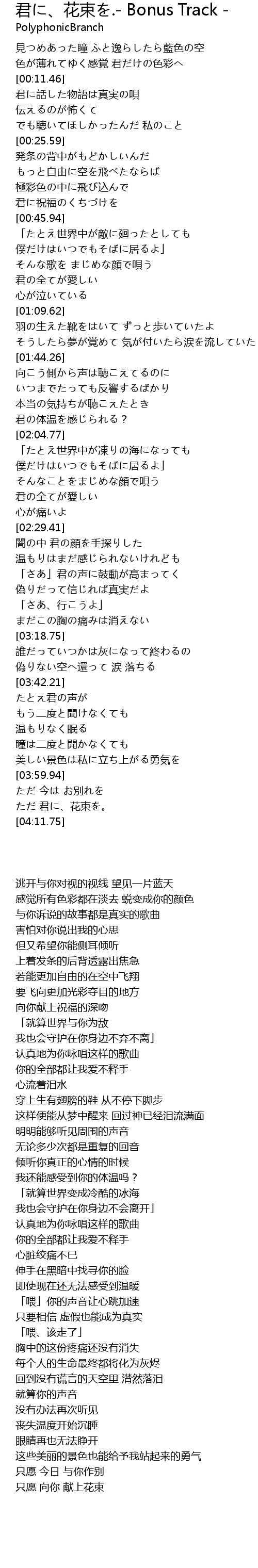 | [04:05.58] | ただ 君に、花束を。 |