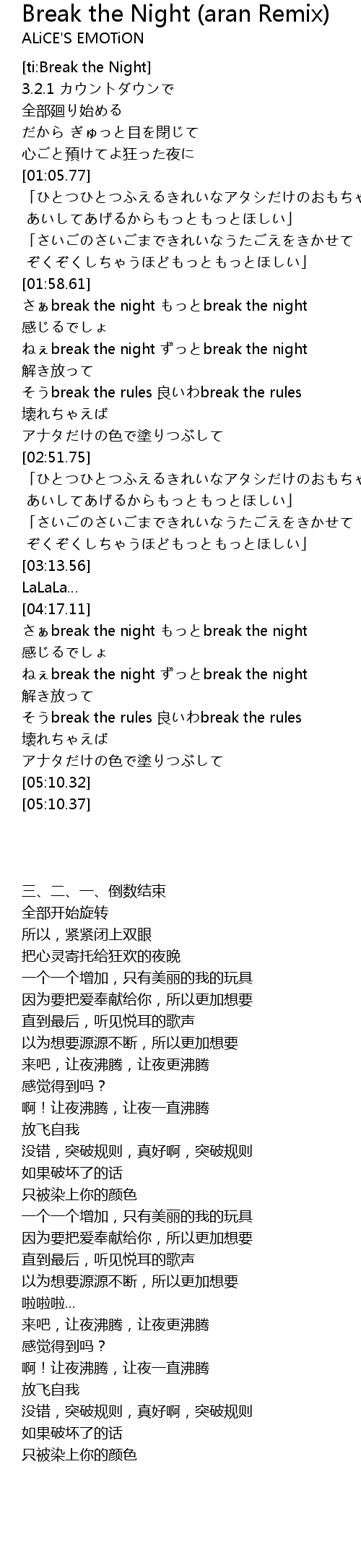 | [04:43.57] | ねぇbreak the night ずっとbreak the night |