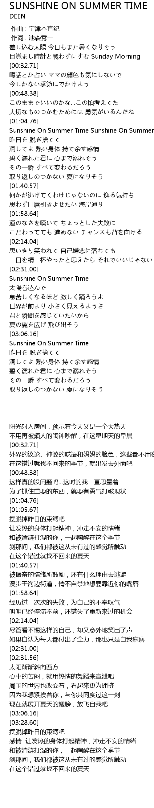 | [03:28.60] | Sunshine On Summer Time |