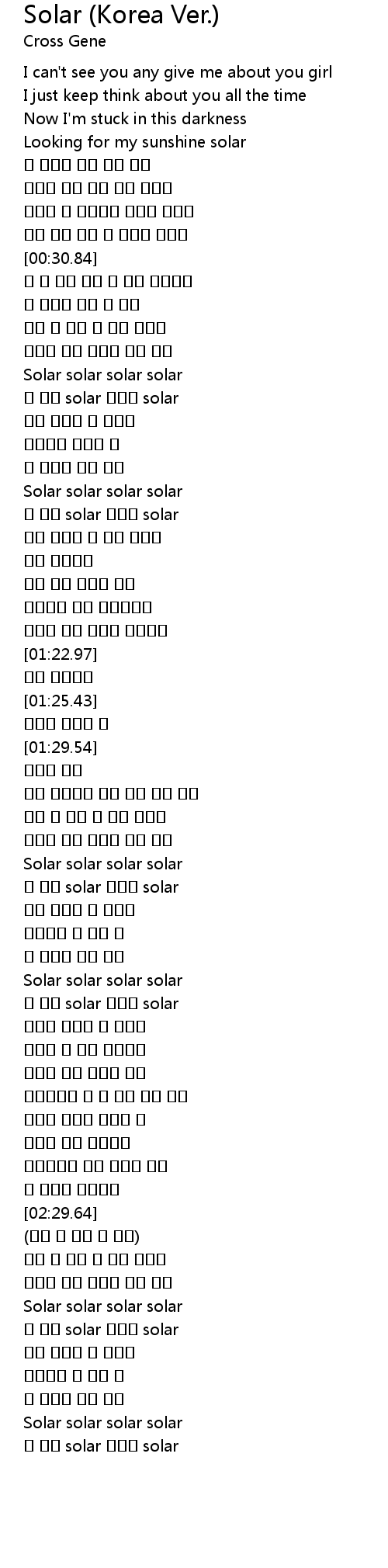 | [02:58.00] | 넌 나의 solar 나만의 solar |
