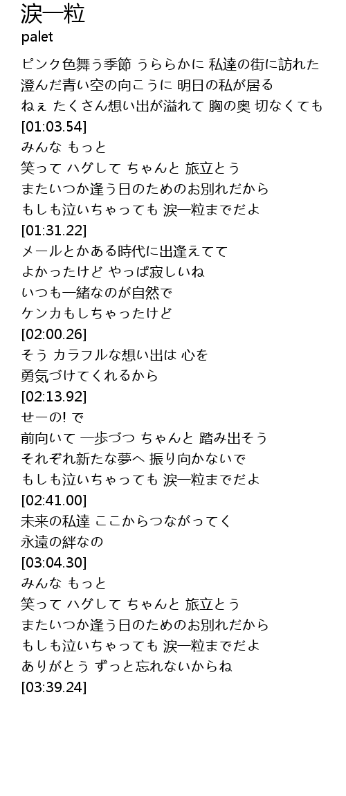 | [01:42.72] | よかったけど やっぱ寂しいね |
