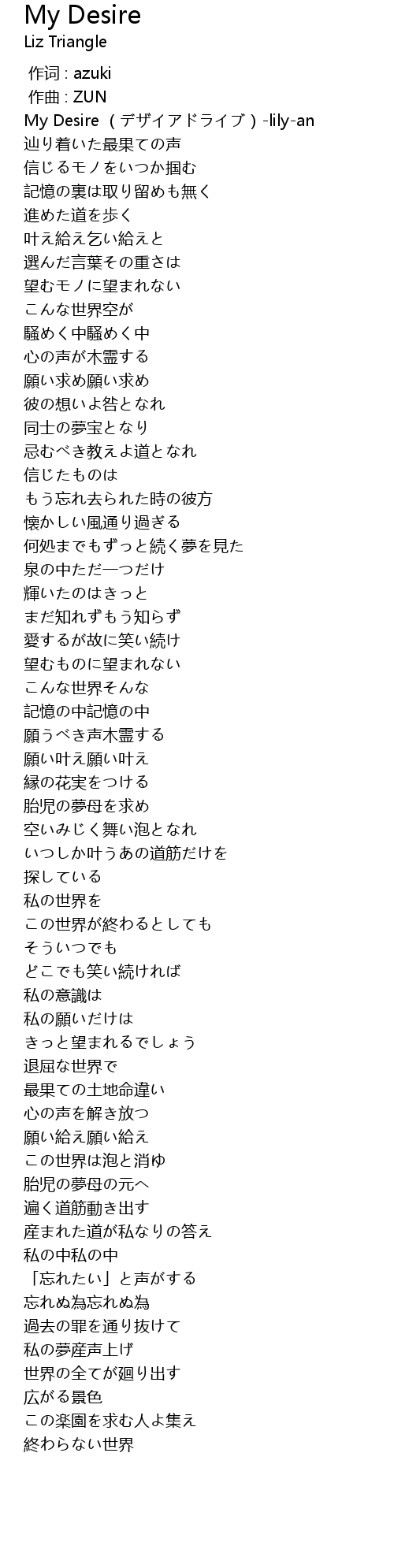 | [00:00.184] | My Desire (デザイアドライブ)-lily-an |