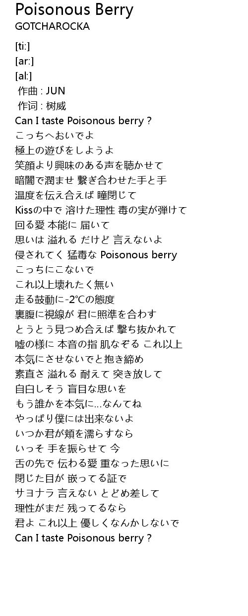| [01:08.44] | 侵されてく 猛毒な Poisonous berry |