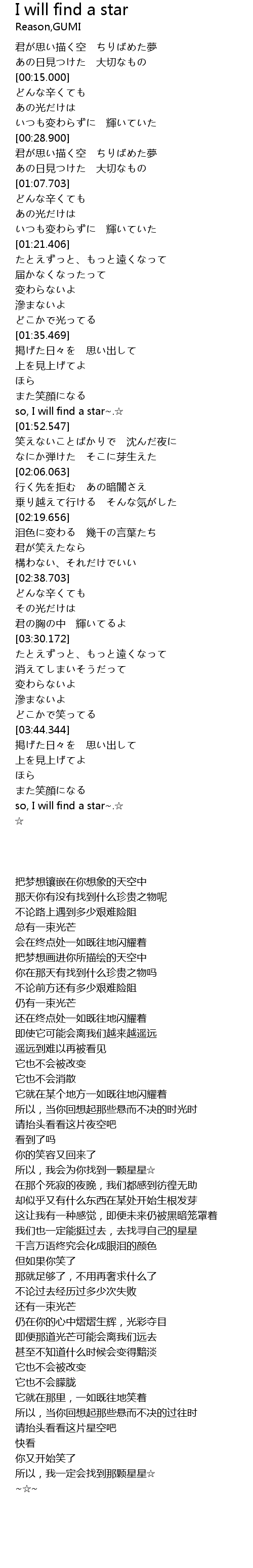 | [01:15.188] | いつも変わらずに 輝いていた |