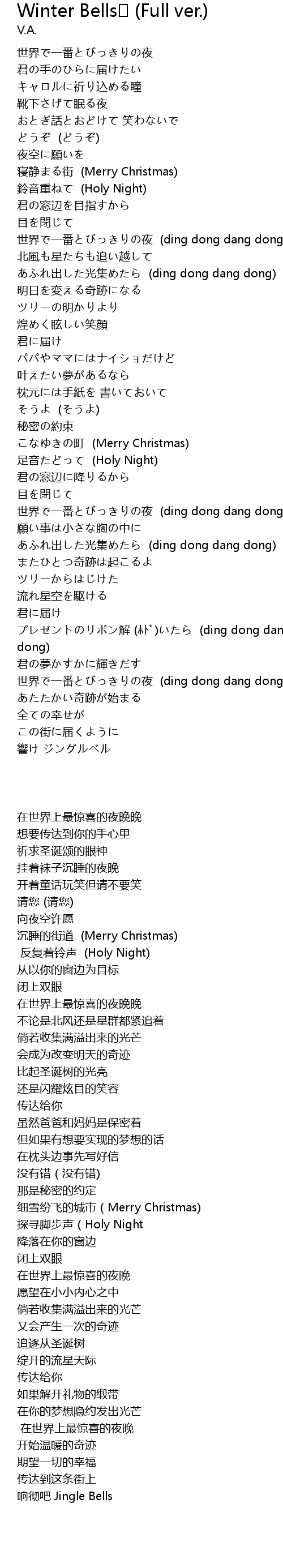 | [01:18.168] | 世界で一番とびっきりの夜 (ding dong dang dong) |