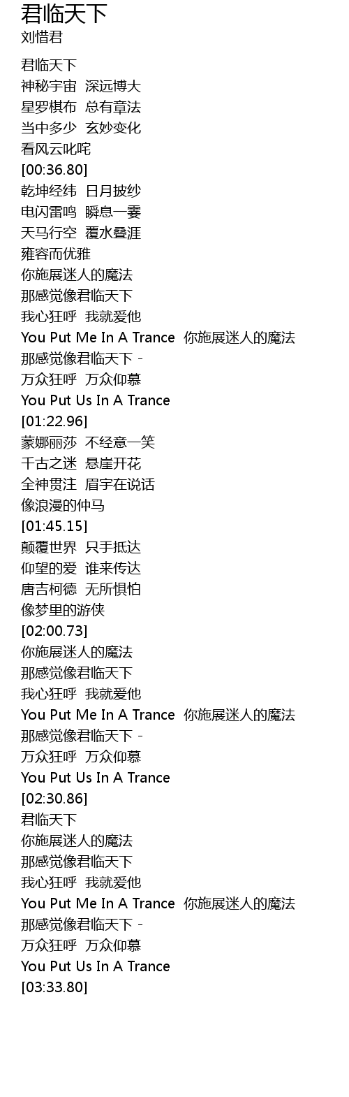 | [02:33.25] | 君临天下 |