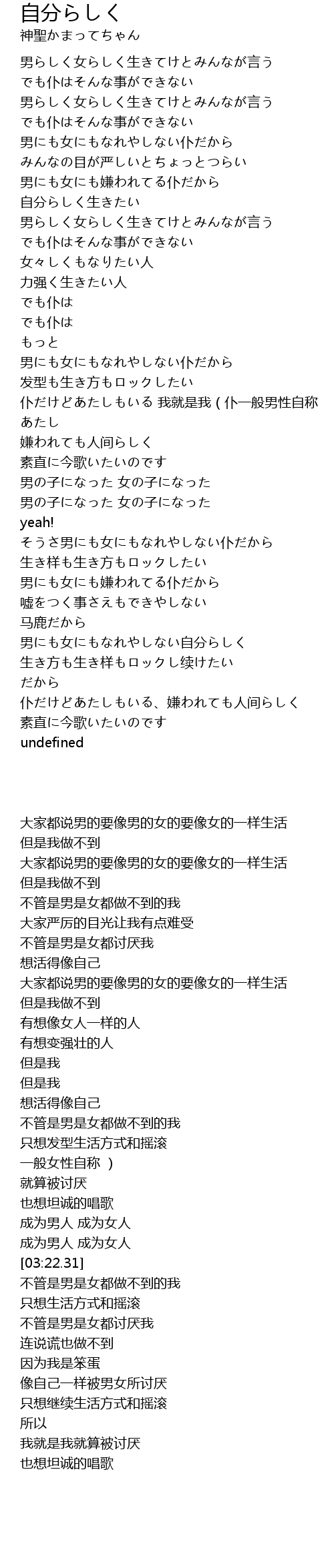 | [02:26.50] | 仆だけどあたしもいる 我就是我(仆一般男性自称 あたし |