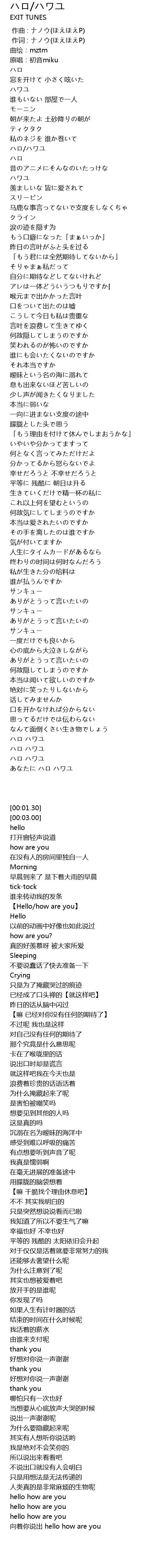 | [04:22.39] | ハロ ハワユ |