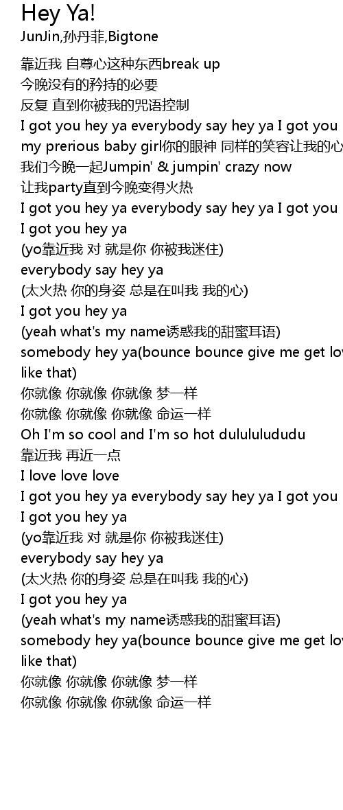 | [00:47.43] | I got you hey ya everybody say hey ya I got you hey ya somebody hey ya |