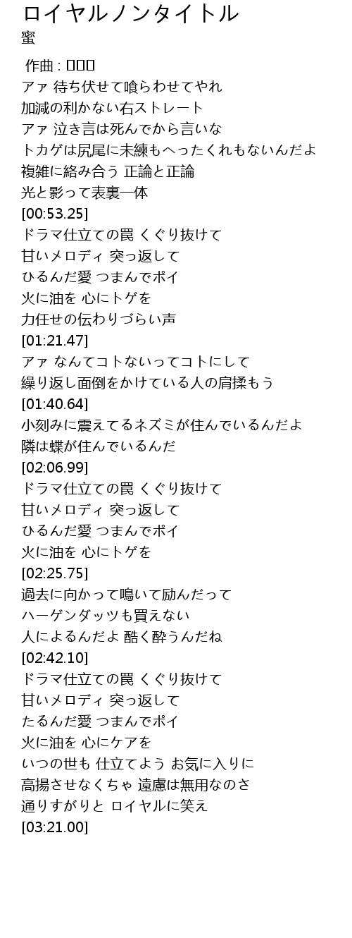 | [03:10.40] | 通りすがりと ロイヤルに笑え |
