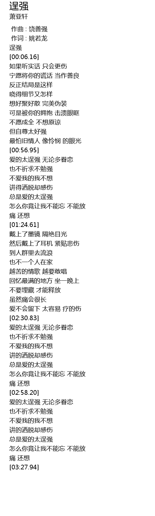 | [03:01.04] | 爱的太逞强 无论多眷恋 |
