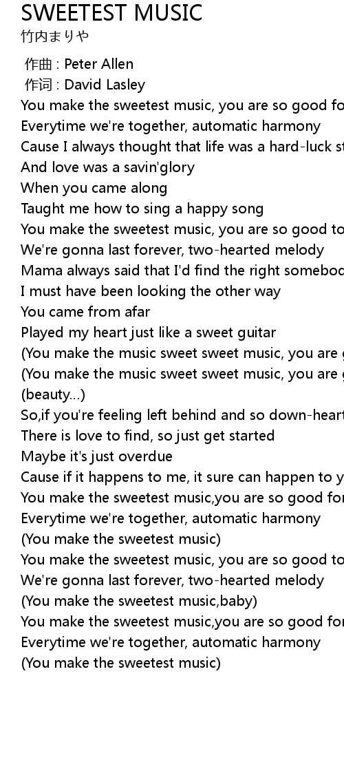 | [01:26.00] | You make the music sweet sweet music, you are good for me |