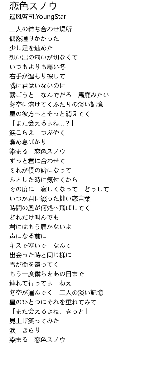 | [03:14.00] | 冬空が運んでく 二人の淡い記憶 |
