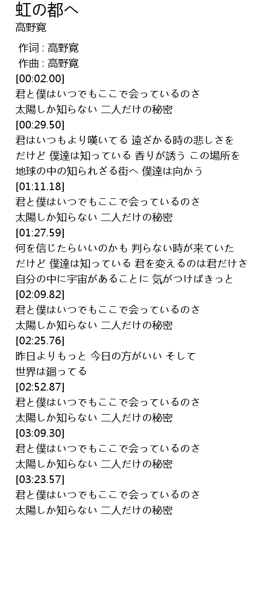 | [03:32.45] | 太陽しか知らない 二人だけの秘密 |