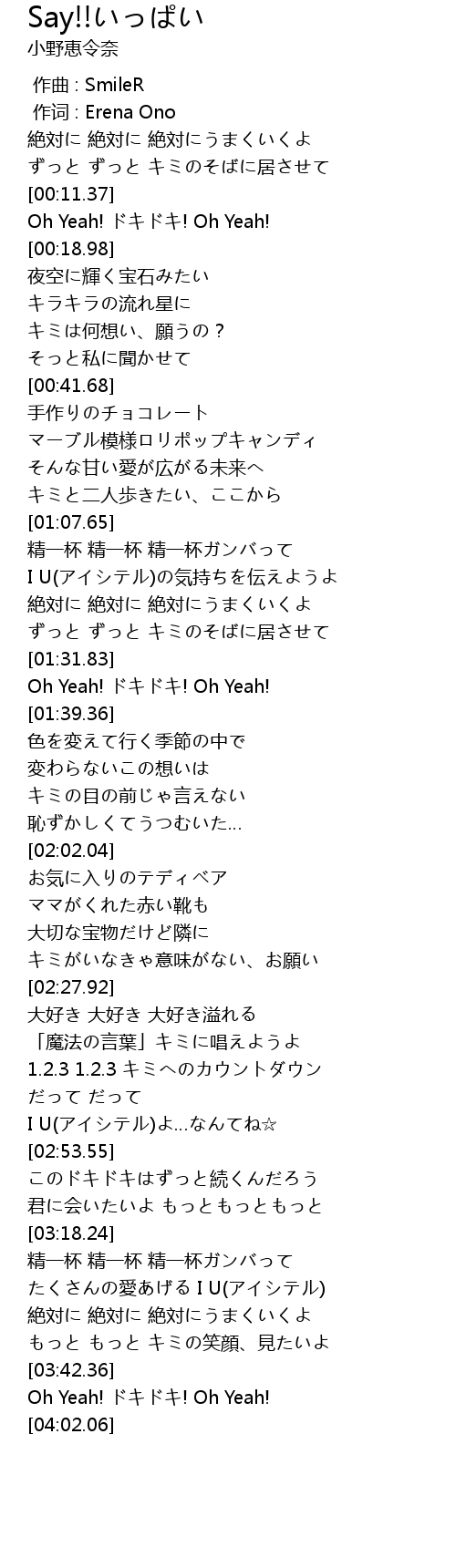 | [03:45.38] | Oh Yeah! ドキドキ! Oh Yeah! |