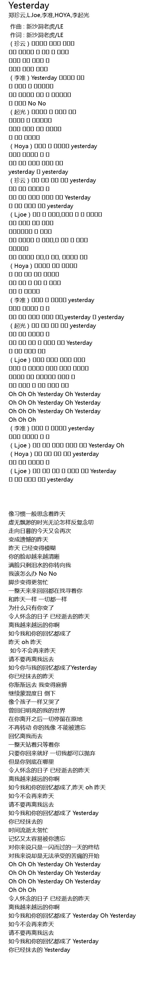 | [03:29.899] | lǐ zhǔn yesterday |