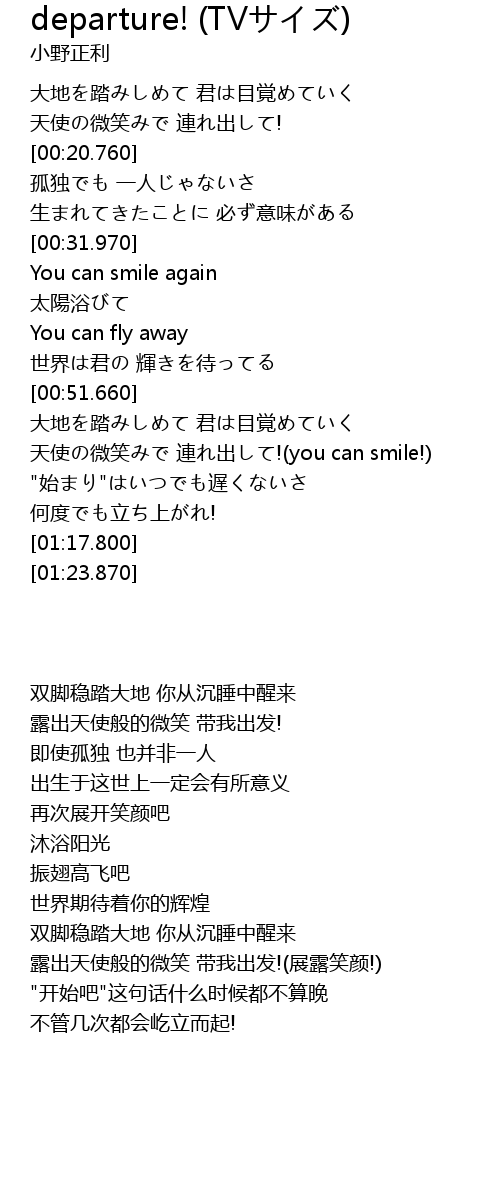 | [00:58.070] | 天使の微笑みで 連れ出して!(you can smile!) |