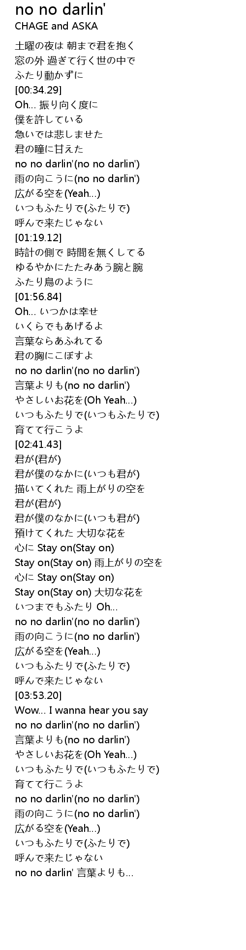 | [03:34.45] | yǔ xiàng no no darlin' |